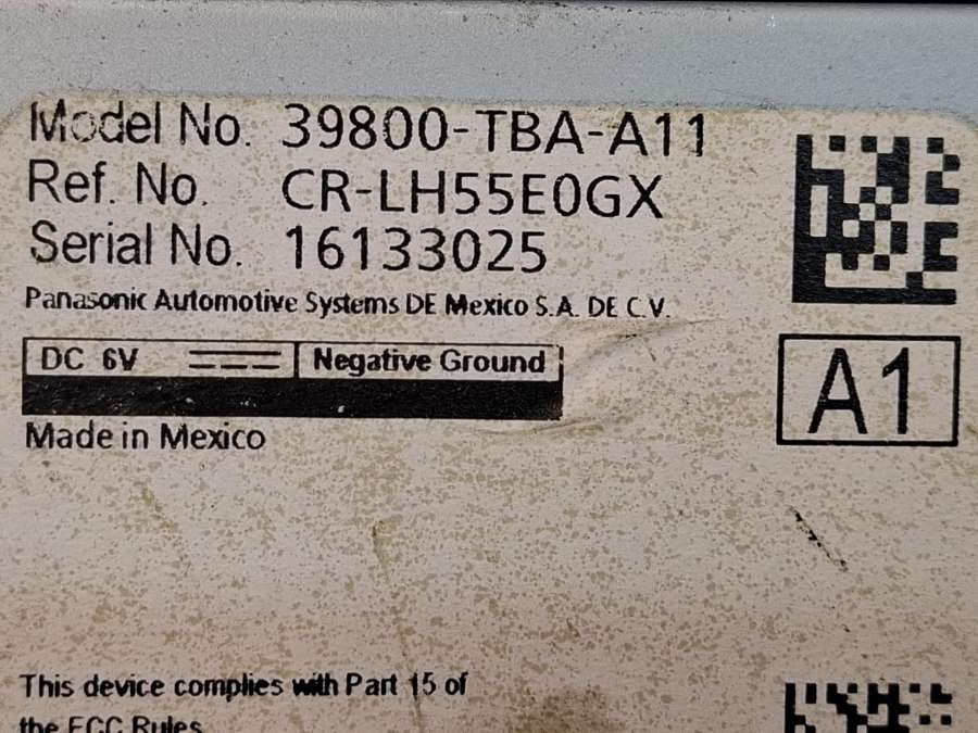 - Номера запчасти: 39800-TBA-A11CR-LH55E0GX