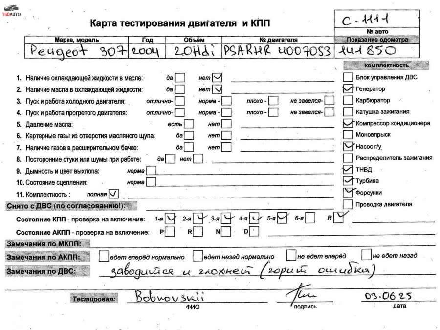 - Авто: 2.0HDI