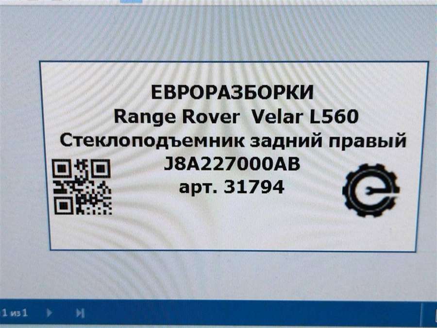 стеклоподъемник задний правый к Land Rover Range Rover Velar, 2018