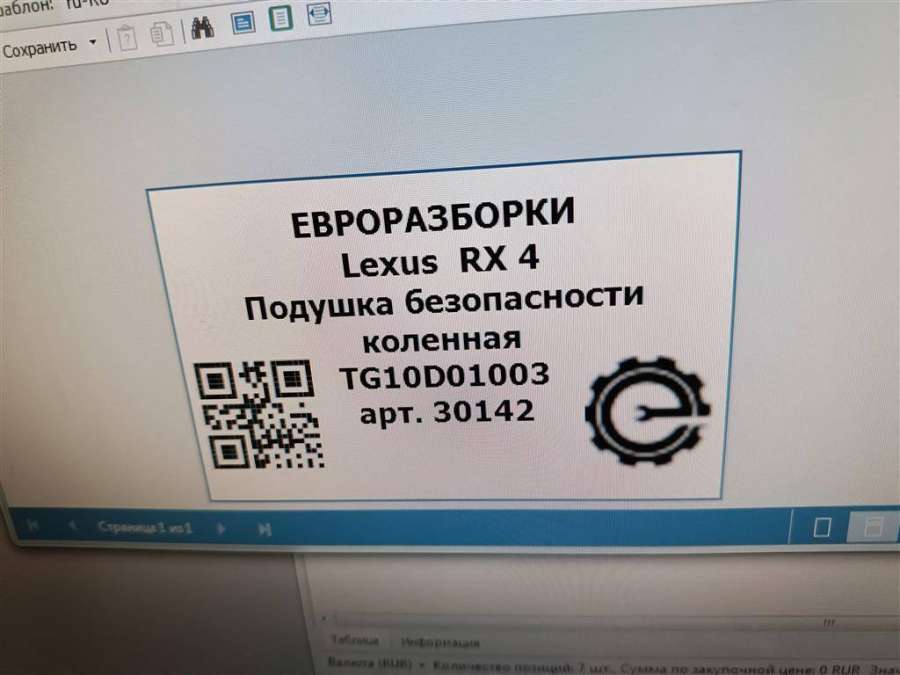 Подушка безопасности коленная к Lexus RX 4, 2017