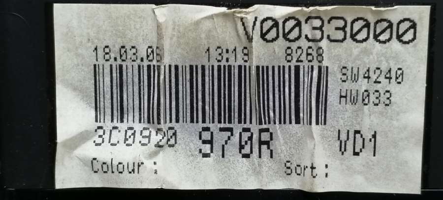 - Номера запчасти: 3C0920970RV0033000