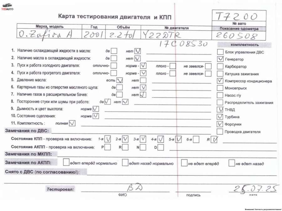 - Номера запчасти: Y22DTR