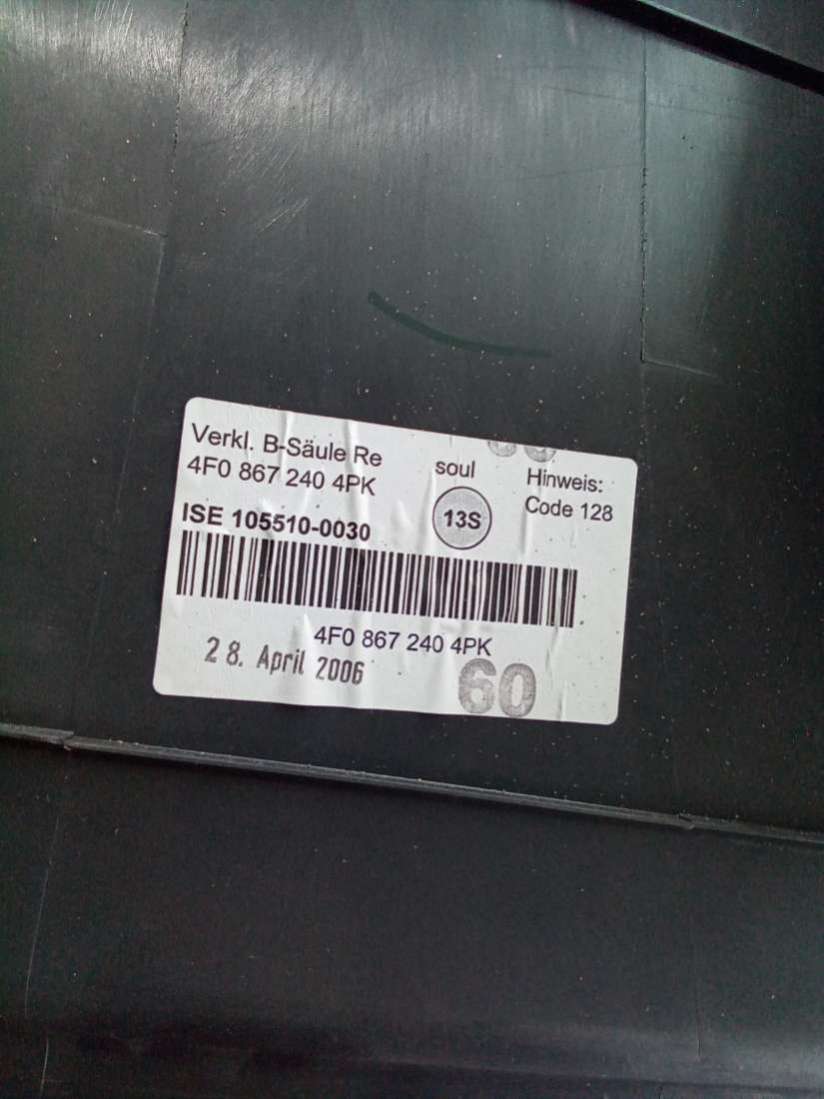 Обшивка стойки центральной правой (накладка) к Audi A6 Allroad C6, 2006