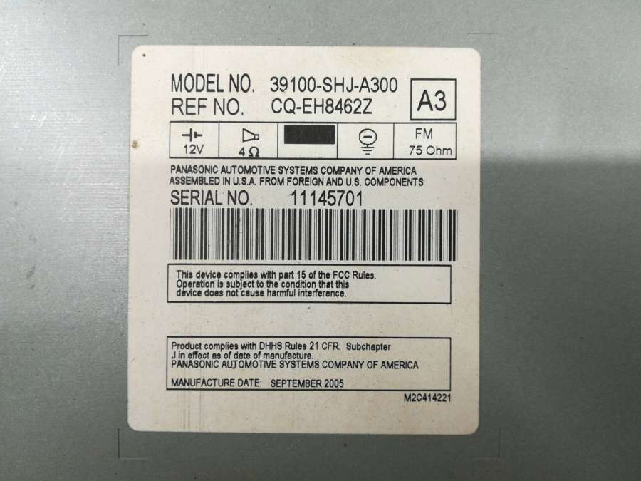 - Номера запчасти: 39810-SHJ-A020 39110-SHJ-A92