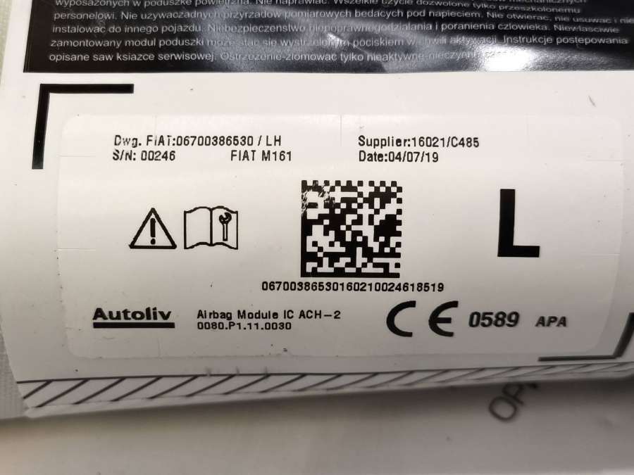 - Название:Подушка безопасности боковая (шторка) левая Maserati 06700386530