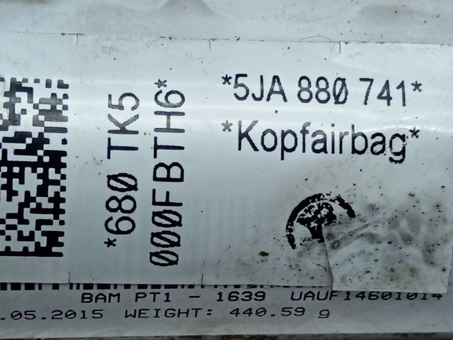 Подушка безопасности боковая (шторка) Skoda Rapid (2012-2020) Хетчбэк 5дв. 2014г. (артикул AS-1819155)