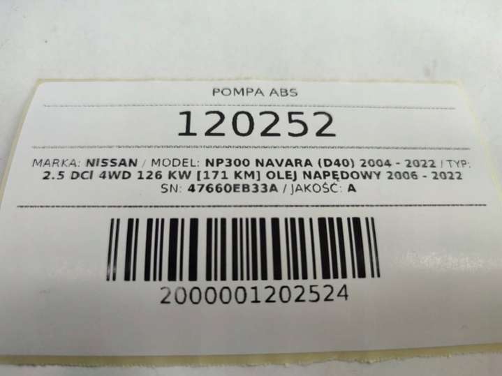 Блок АБС (ABS) к Nissan Navara D40, 2005