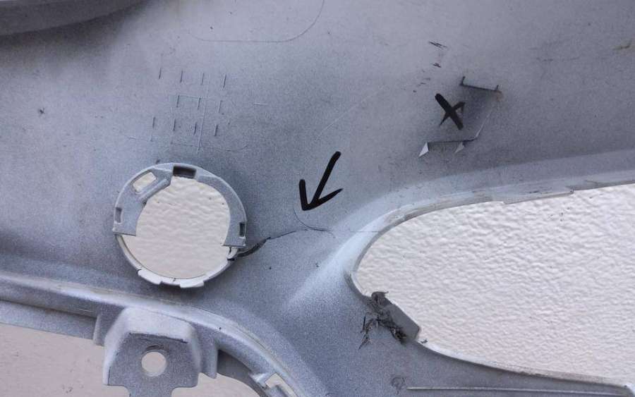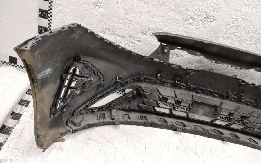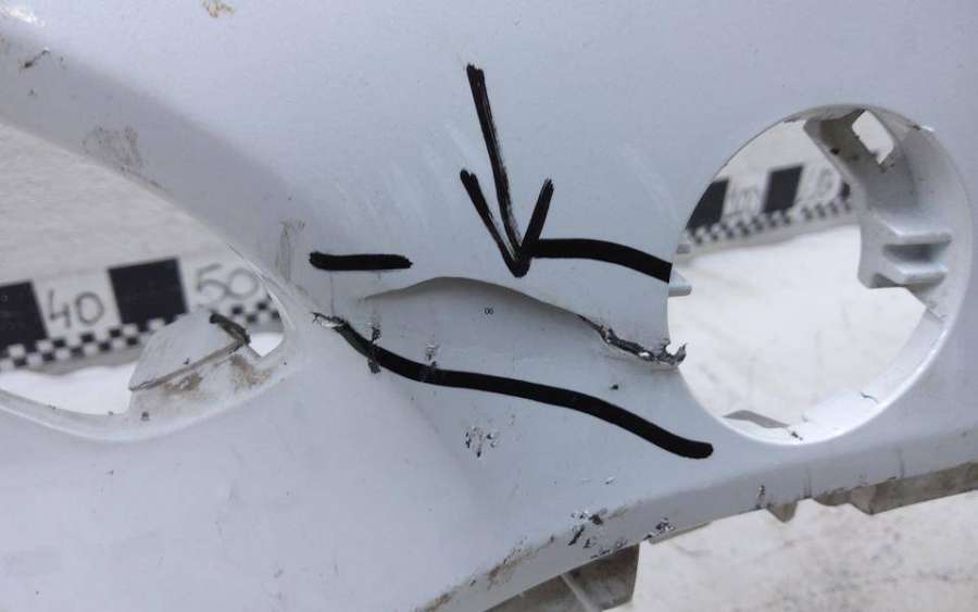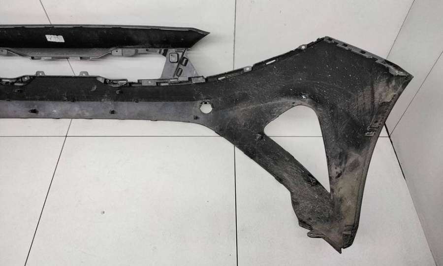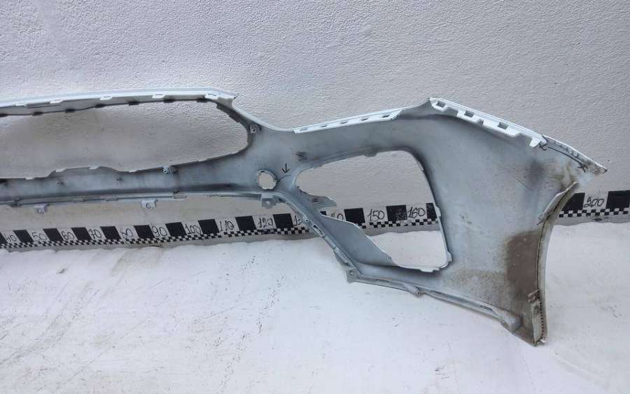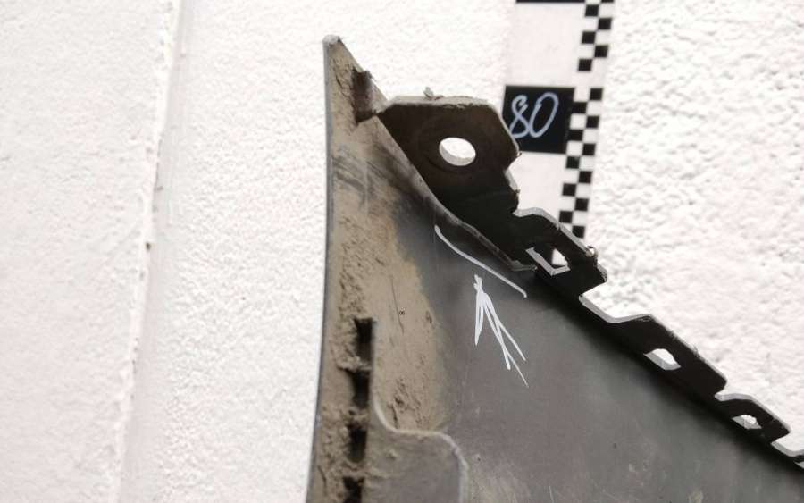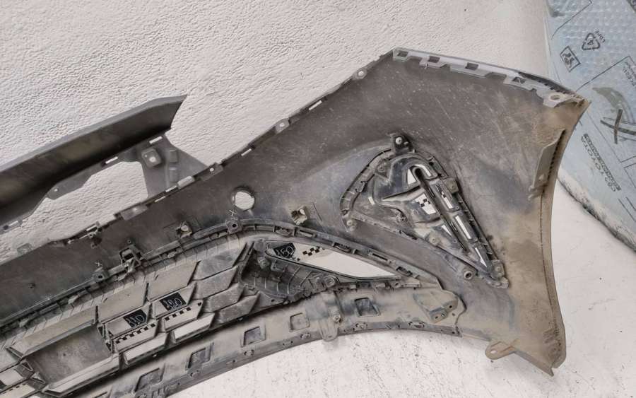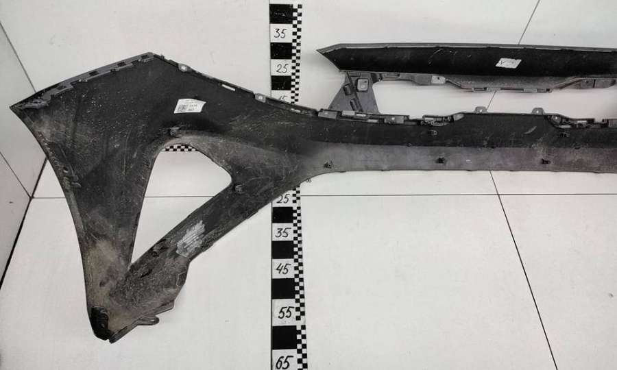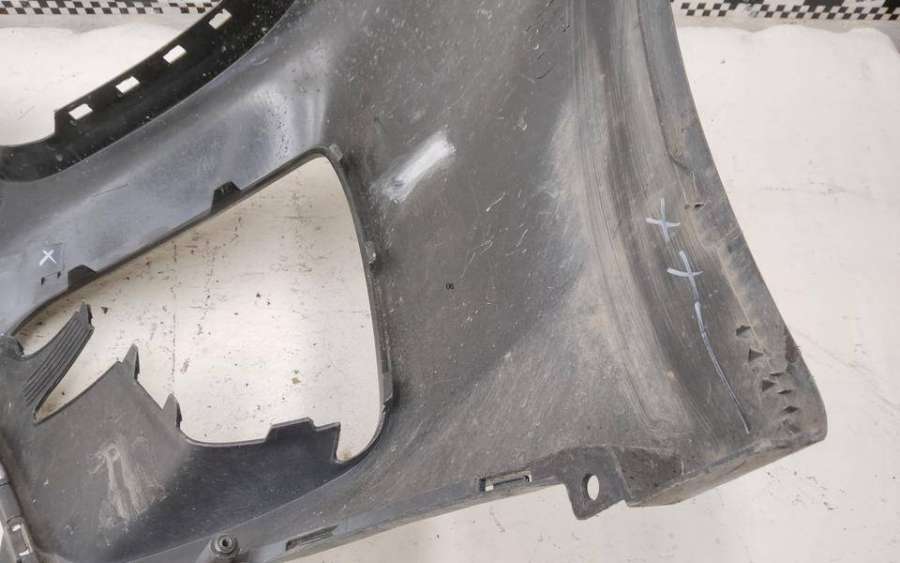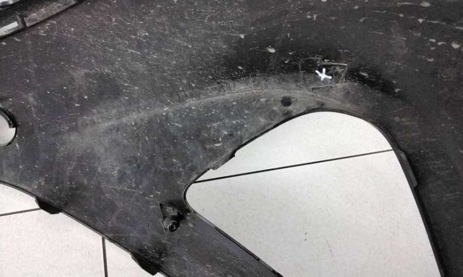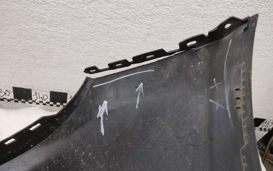 Артикул: a-em-984655K Состояние детали удовлетворительное. Серого цвета, потертости, царапины, притертость слева. Сломано два крепления подкрылка и два крепления ПТФ слева, основные крепления целые. Потребуется ремонт и покраска
