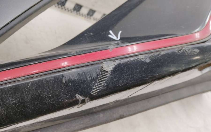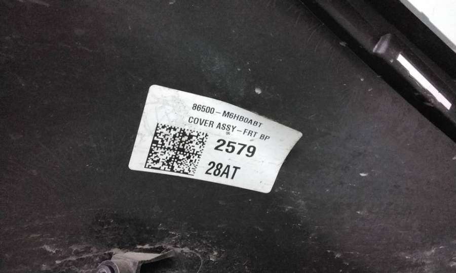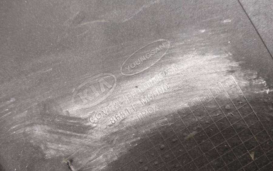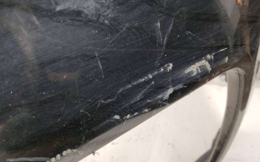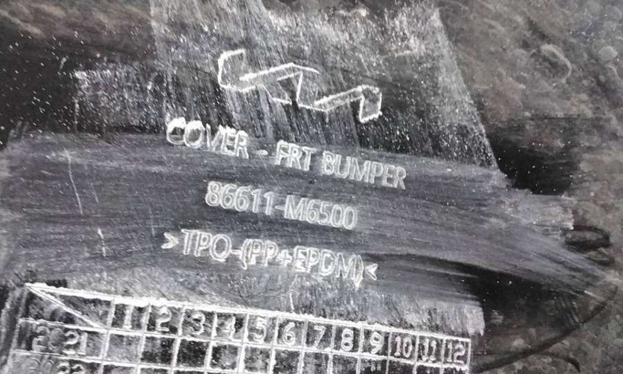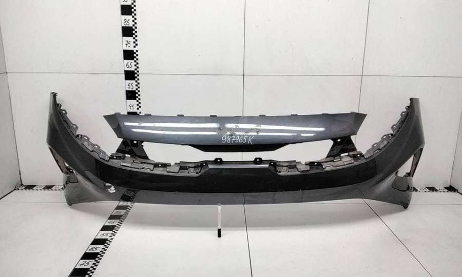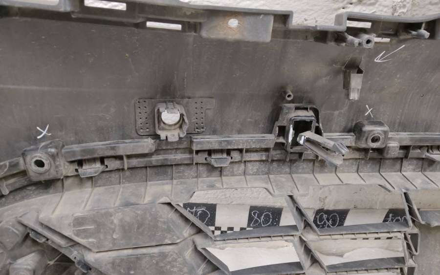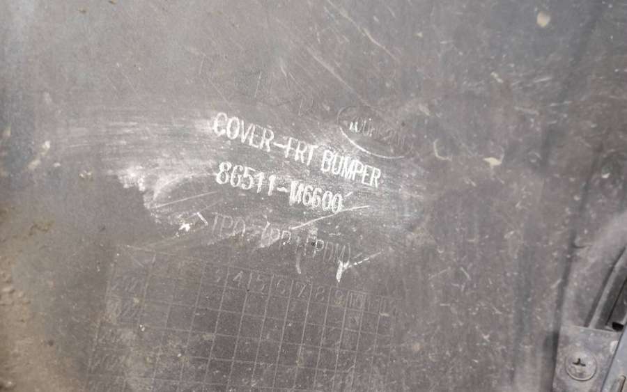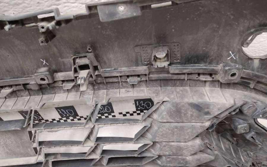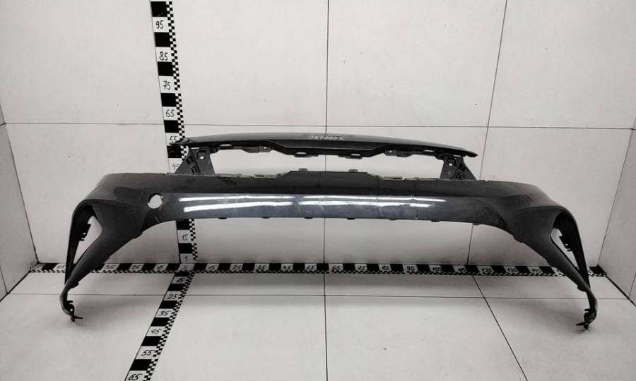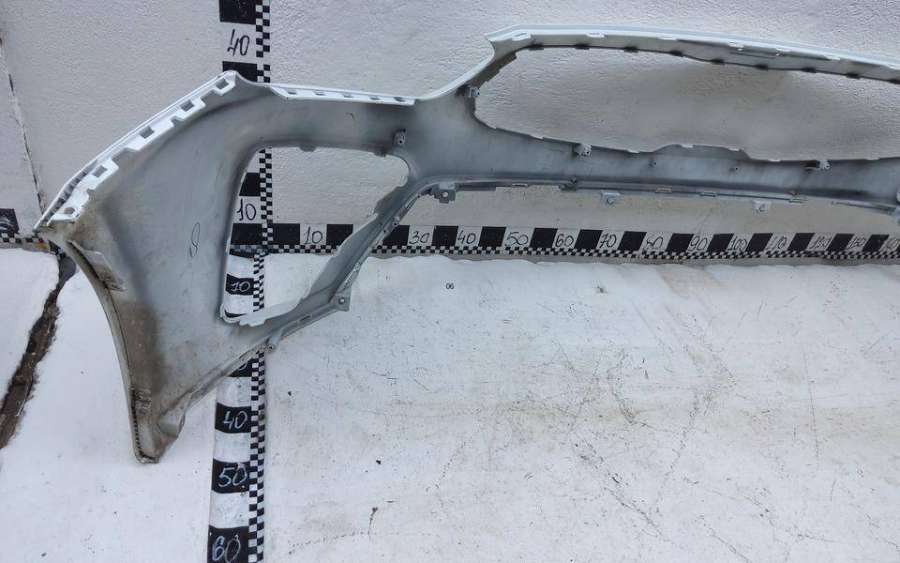 Артикул: a-em-984655K Состояние детали удовлетворительное. Серого цвета, потертости, царапины, притертость слева. Сломано два крепления подкрылка и два крепления ПТФ слева, основные крепления целые. Потребуется ремонт и покраска