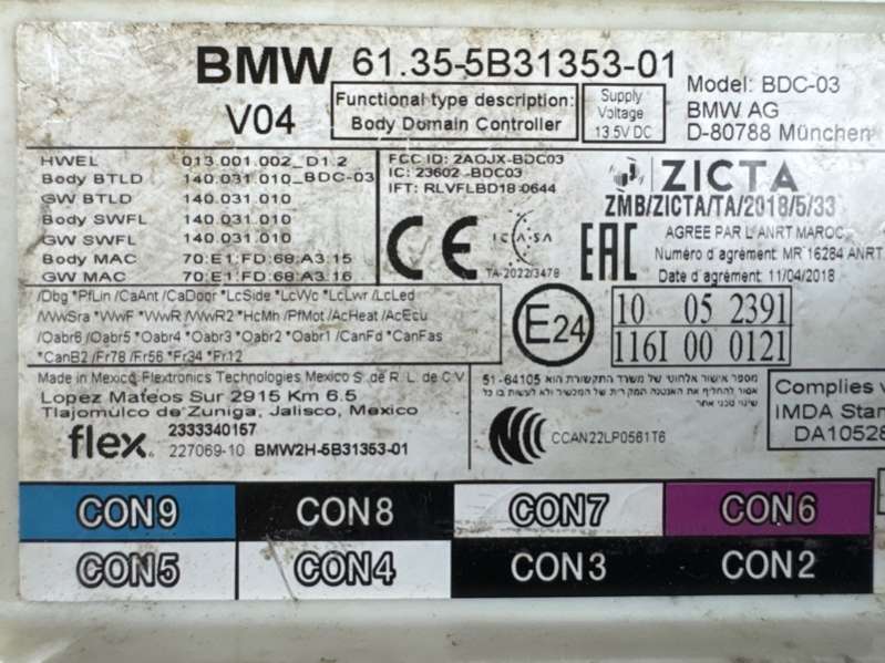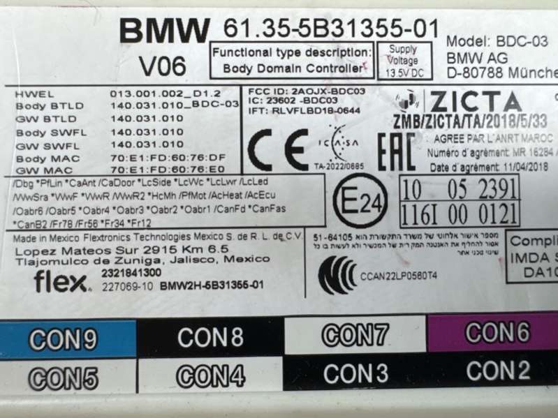 Body Domain Controller (BDC) V06 / HWEL 001.001.008 / HWAP 00006E60