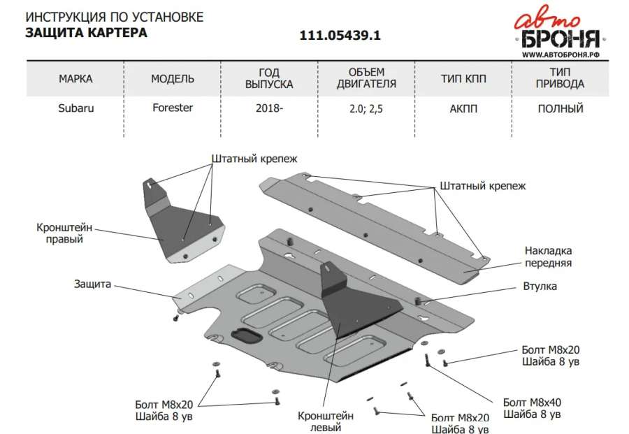 Защита (пыльник) двигателя к Subaru Forester SK, 2020