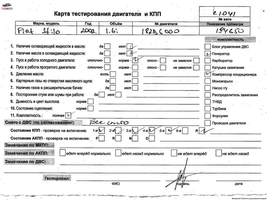 Двигатель к Fiat Stilo, 1999