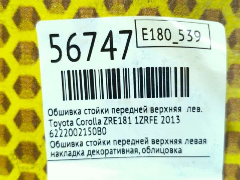 Обшивка стойки Toyota Corolla E180 2013г. (артикул АМС-amc-578306)