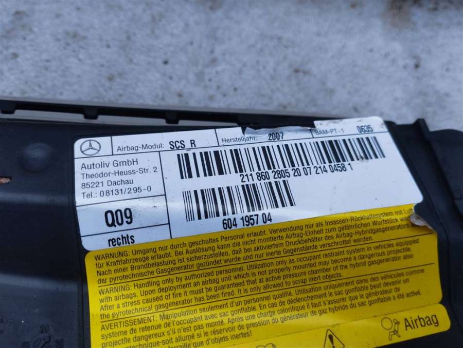 Подушка безопасности боковая (в сиденье) к Mercedes E W211, 2009