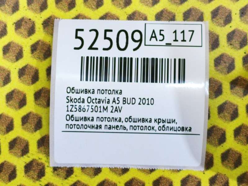 Обшивка потолка Skoda Octavia A5 1Z3 2010г. (артикул ser-22681)