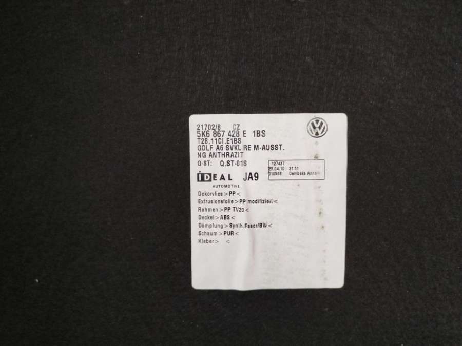 Обшивка багажника к Volkswagen Golf 5, 2010- Название: Обшивка багажника правая