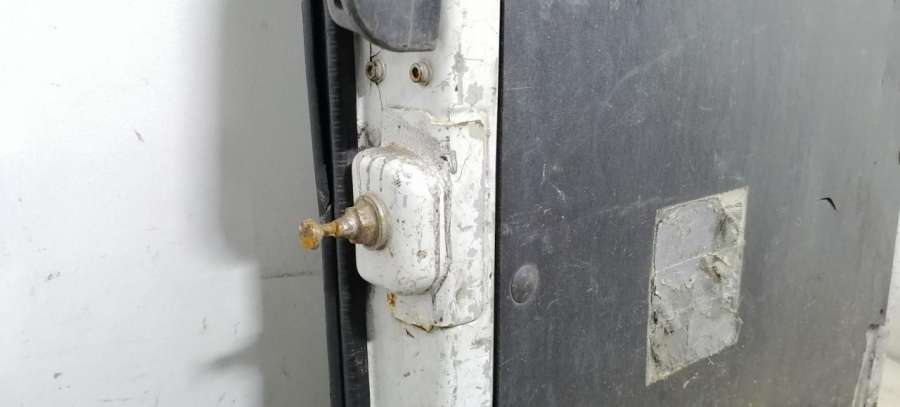 Цвет белый.ДЕФЕКТ. ВМЯТИНА, РЖАВЧИНА. Две петли, внутреняя ручка, ответная часть замка. Стекло. Цена указана за пустую дверь.