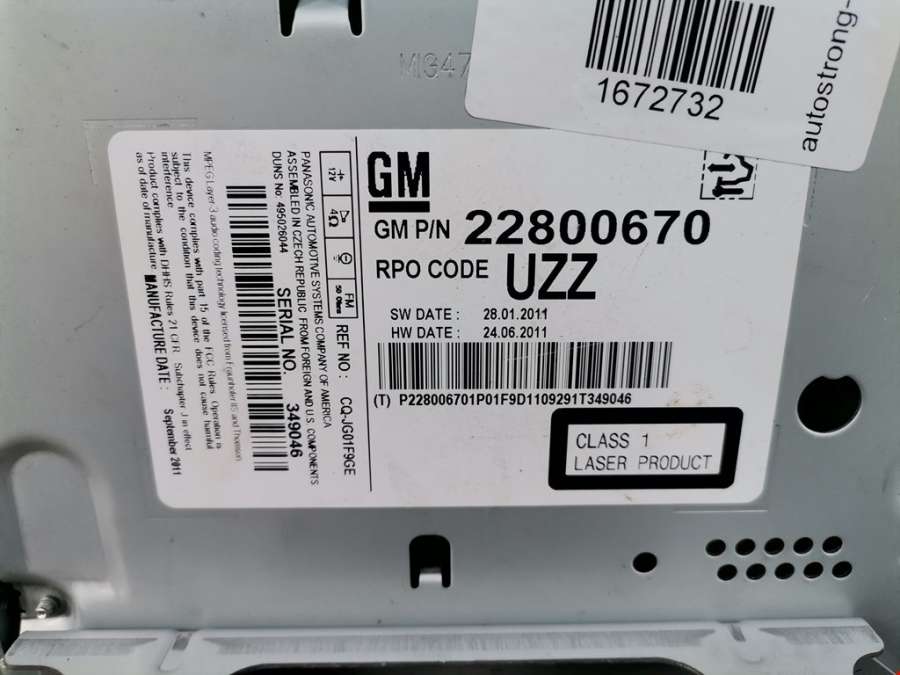 Магнитола (аудио система) к Opel Astra J, 2011