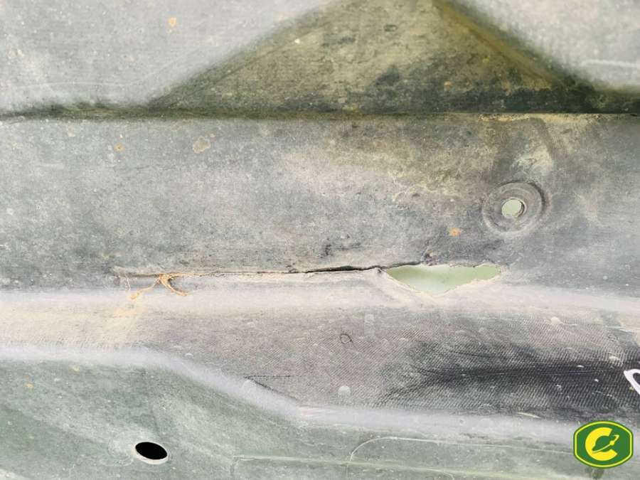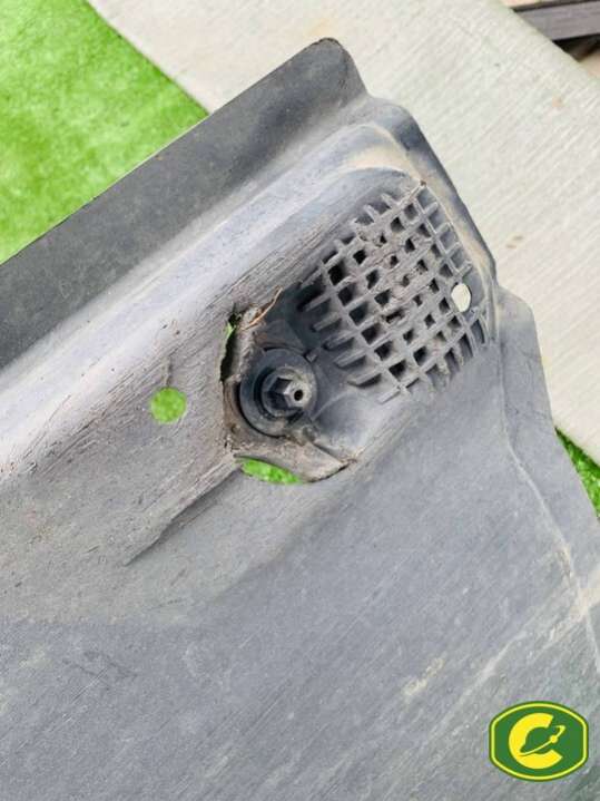 Защита днища левая. Дефекты на фото.