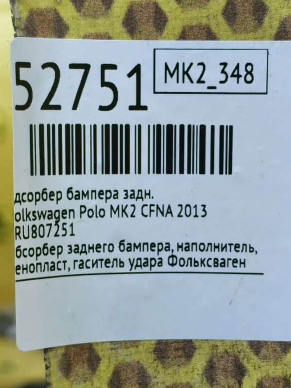 Адсорбер бампера Volkswagen Polo MK2 2018г. (артикул PSK-50675)