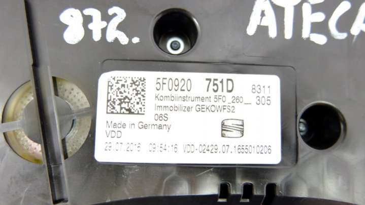 Щиток приборов (приборная панель) Seat Ateca 1 поколение (2016-2024) 2016г. (артикул PLD-e10732791)