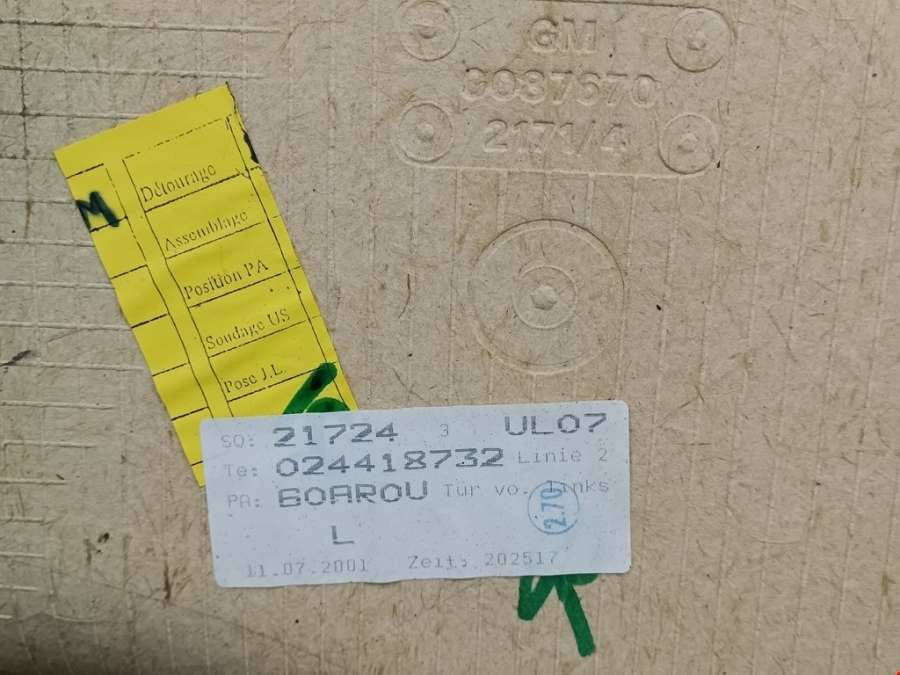 Обшивка двери передней левой (дверная карта) Opel Zafira 1997г. (артикул PNK-CB10018477)