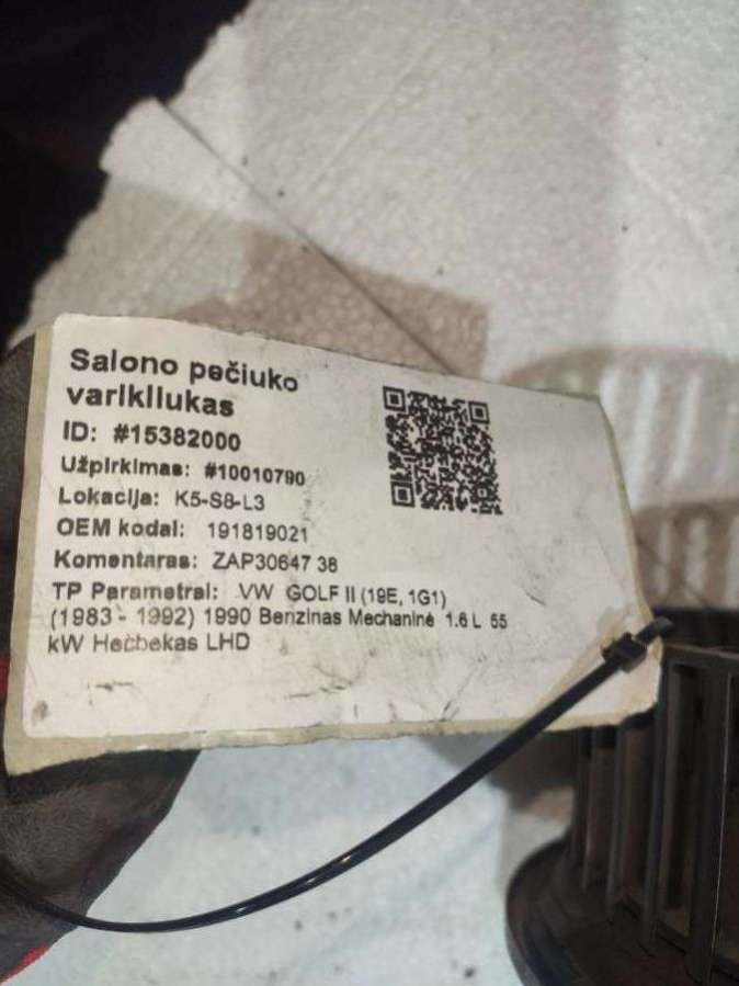 Артикул 124785. - - - 191819015 - - - Корпус моторчика отопителя (печки)Без моторчикаС Volkswagen Golf II 1992г. 1.8 бензин .