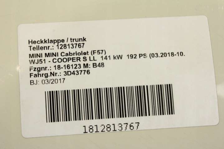 Крышка багажника (дверь 3-5) Mini Cabrio F57 (2015-2018) 2015г. (артикул PLD-e11334439)