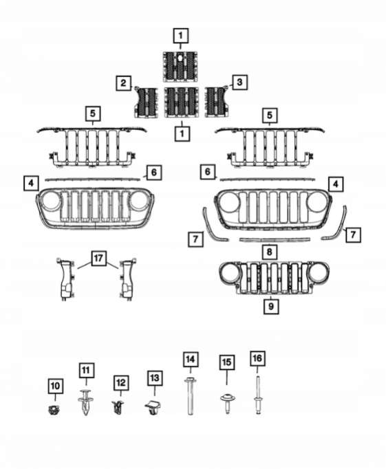 Решетка радиатора Jeep Wrangler JL (2017-2024) 2017г. (артикул PLD-e10816215)