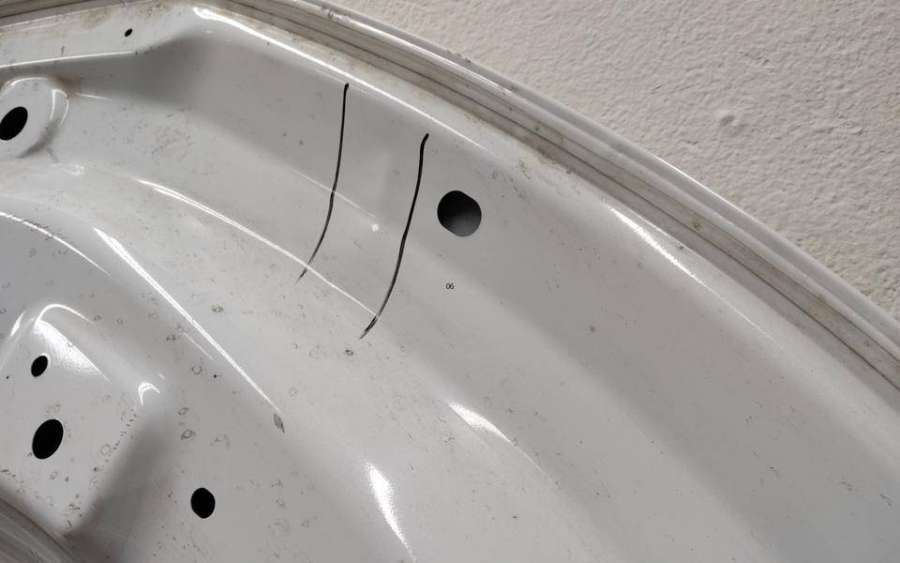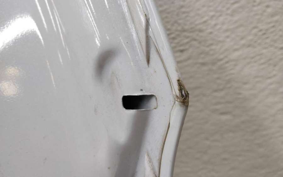 Артикул: a-em-961646T Состояние детали хорошее. Белого цвета, скол ЛКП. Вмятина в передней части, тычки, дефект на внутренней поверхности. Потребуется ремонт