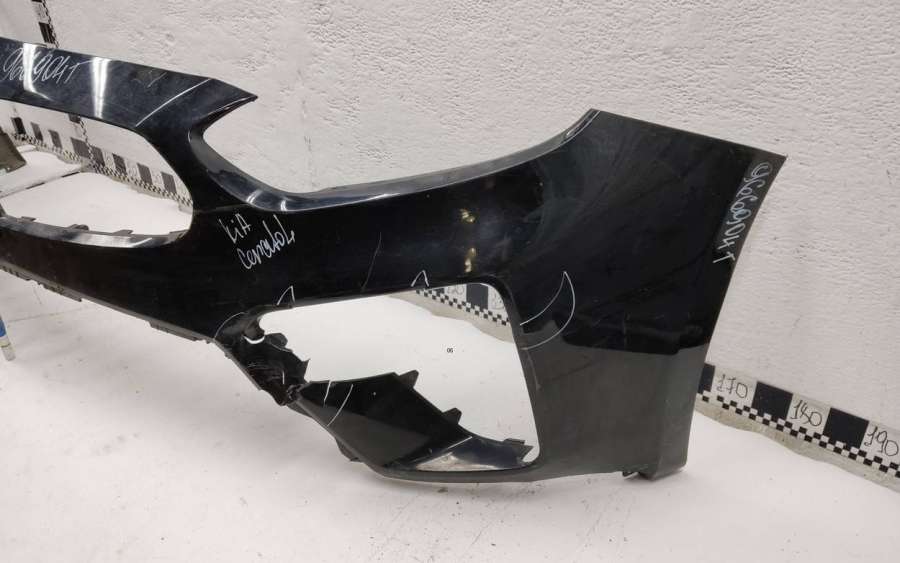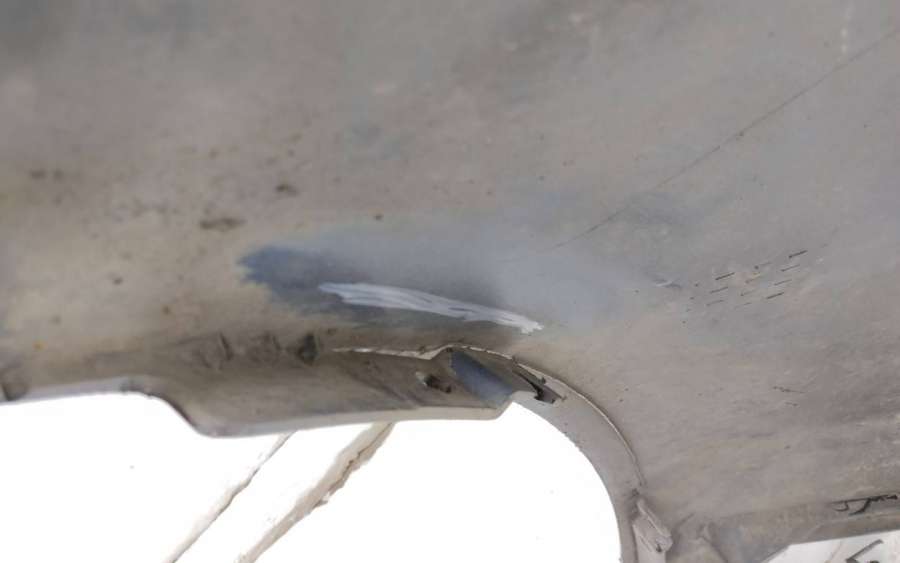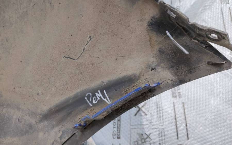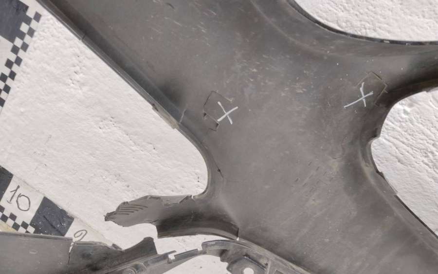 Артикул: a-em-982986T Состояние детали хорошее. Белого цвета. Небольшая трещина. Отсутствуют три крепления, в том числе одно под правую ПТФ. Потребуется ремонт