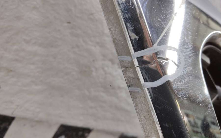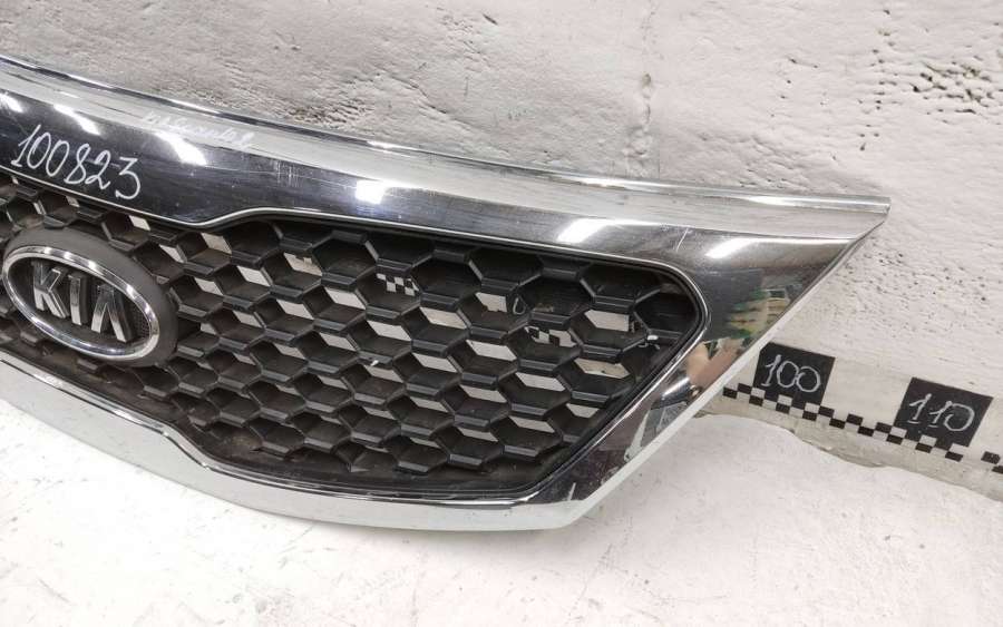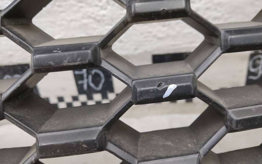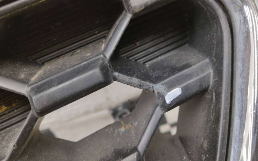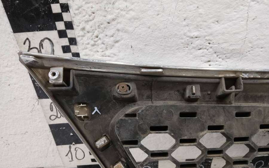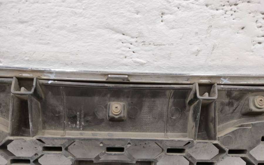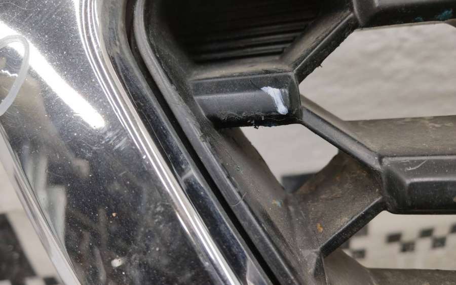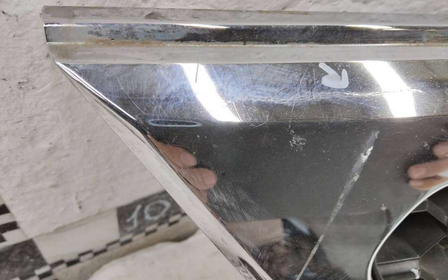 Артикул: a-em-962464T Состояние детали удовлетворительное. Серого цвета, потёртости. Хромированная рамка с трещинами, дефект на фото. Крепления решетки целые. На рамке отсутствуют шесть креплений. Может потребоваться ремонт