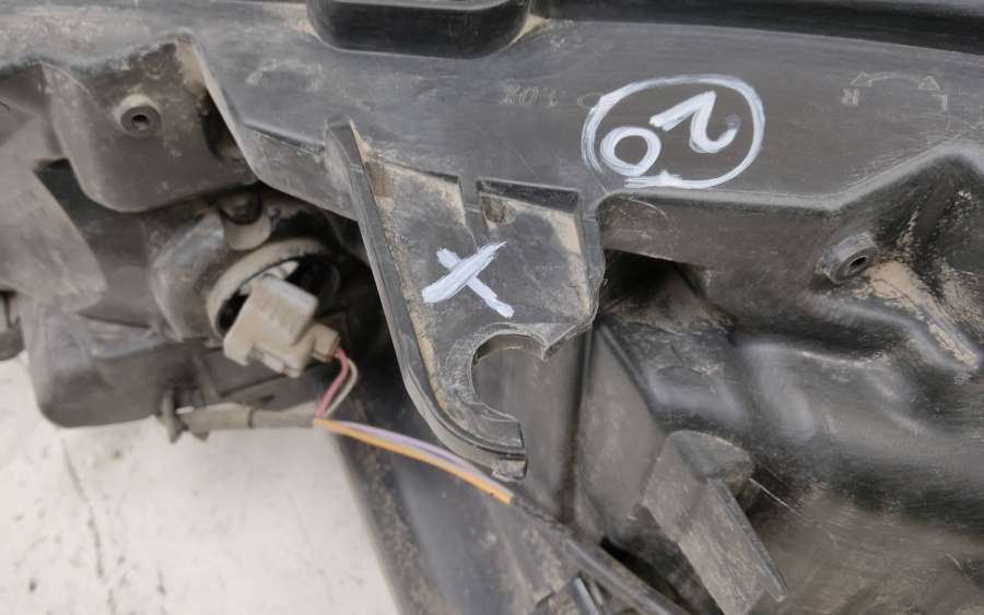 Артикул: a-em-957135T Состояние детали хорошее. Потёртость стекла, небольшие следы конденсата на внутренней поверхности. Одно крепление отсутствует, одно - сломано, дефект пластика на фото. Потребуется ремонт