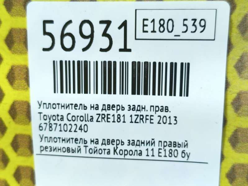 Уплотнитель на дверь задний левый резиновый Тойота Корола 11 Е180 бу оригинал