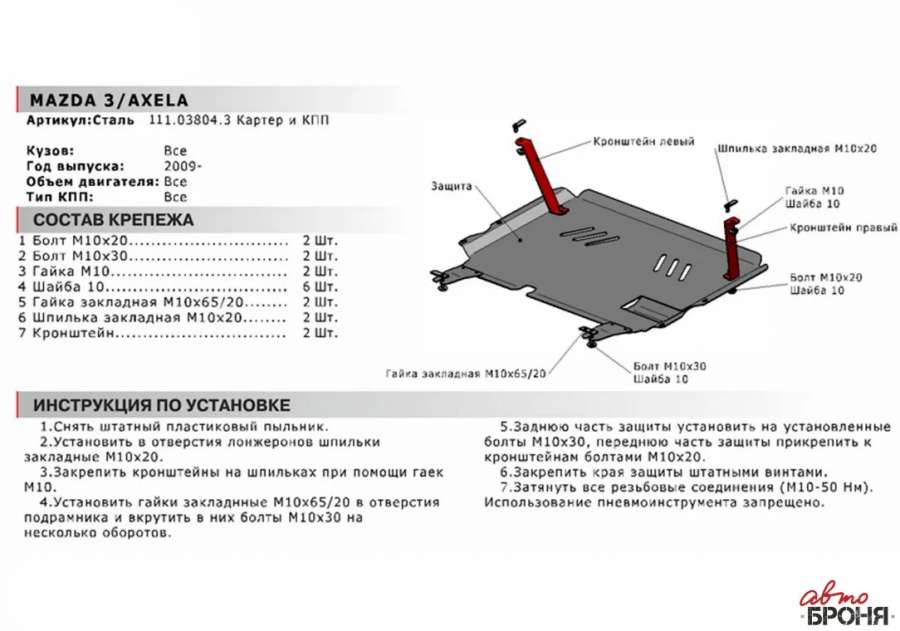 - Название:Защита двигателя Mazda 3 BK (2003-2009) 312904