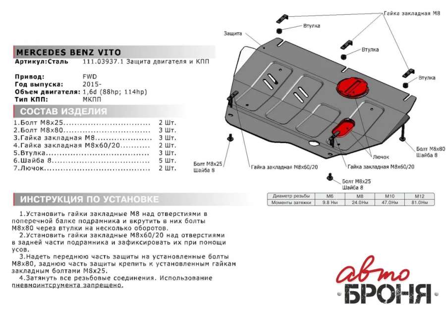 Защита двигателя Mercedes-Benz Vito (W447) 2016г. (артикул LOK-43160557)
