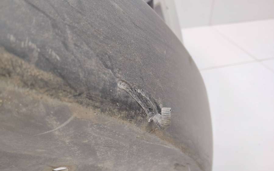 Как на фото справа дефект губы и есть трещины возле ПТФ справа. Царапины в центральной части из Германии