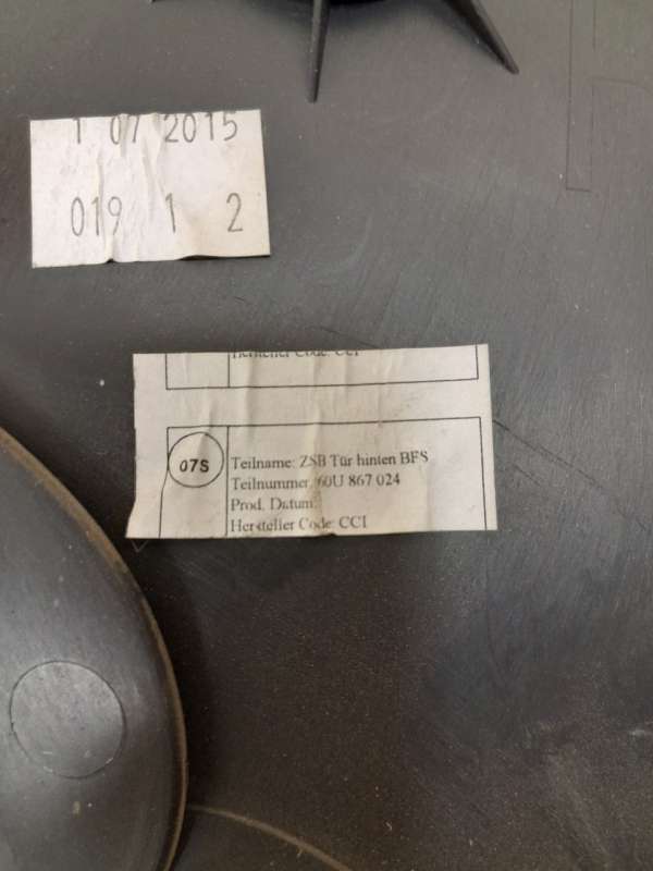 Обшивка боковой двери,право,зад Skoda Rapid (2012-2020) Хэтчбек (5-дв) 2016г. (артикул TDA-25019667/2)