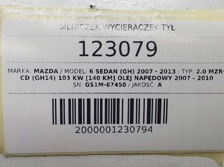 Моторчик стеклоочистителя фар Mazda 6 2 поколение (2007-2012) 2007г. (артикул PLD-e12913331)