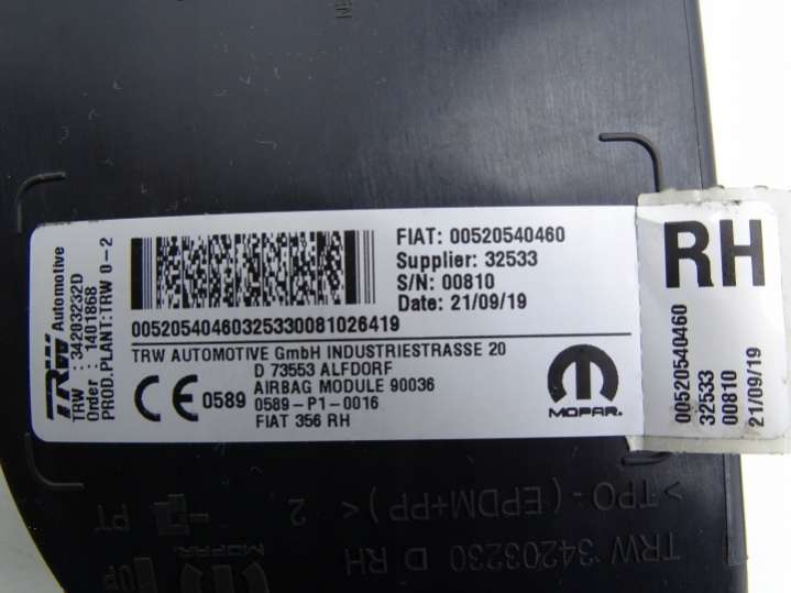 Подушка безопасности Fiat Tipo 2 поколение (2015-2024) 2015г. (артикул PLD-e12540500)