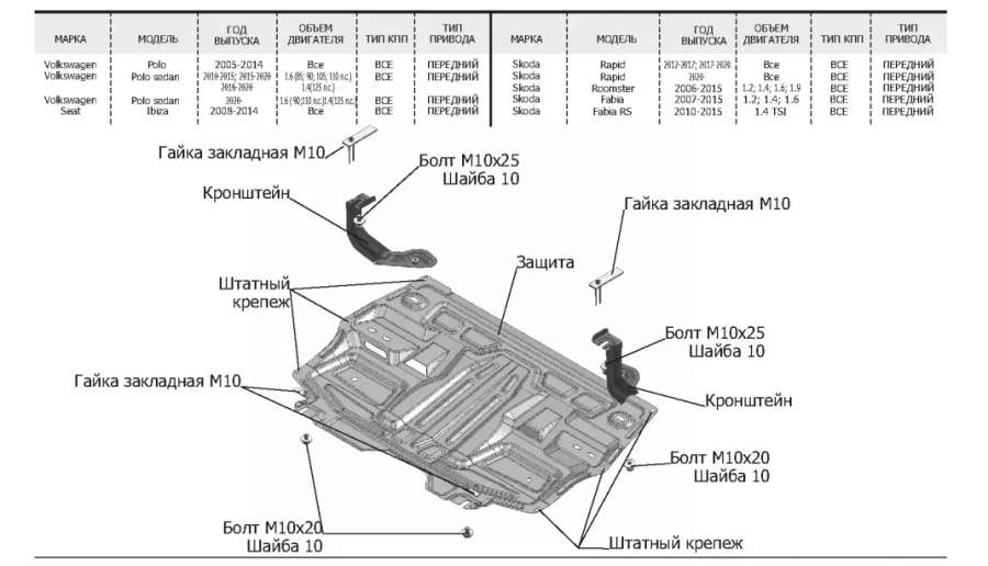 - Название:Защита двигателя Skoda Fabia (1999-2007) 310801