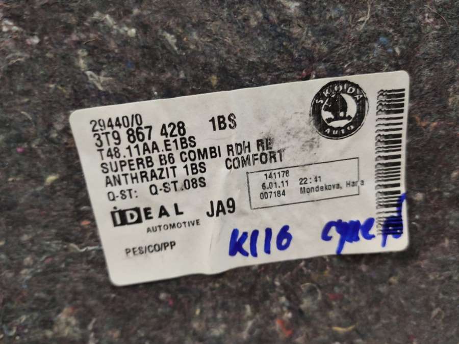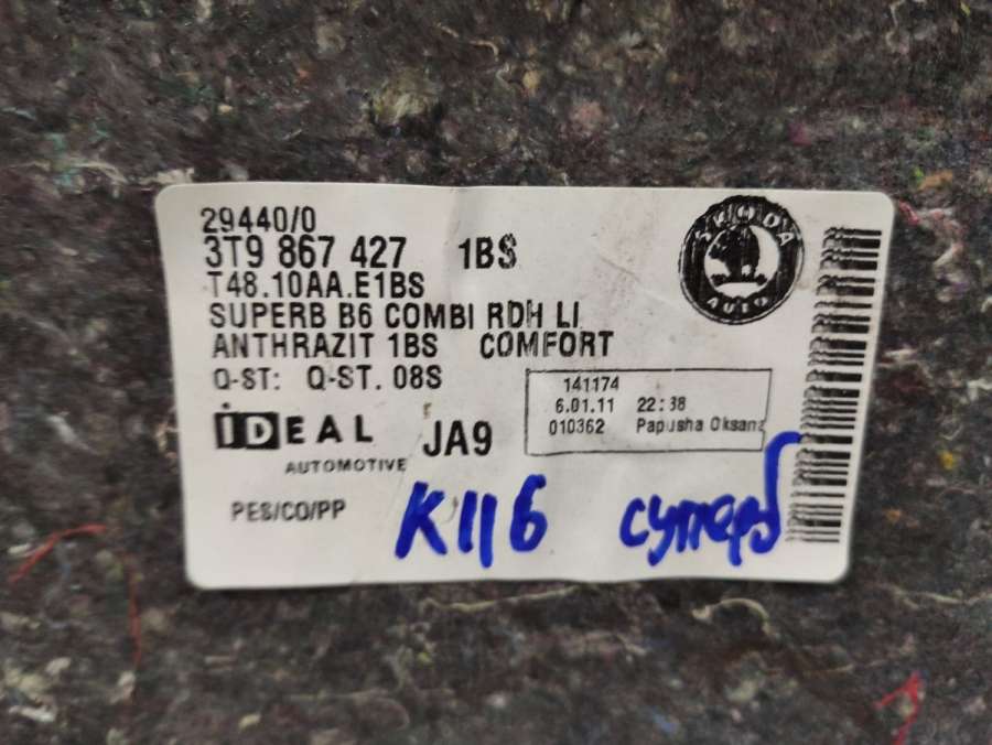 Обшивка багажника к Skoda Superb 2, 2011