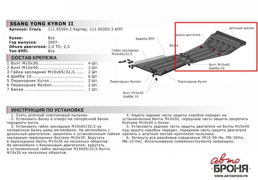 Защита (пыльник) двигателя SsangYong