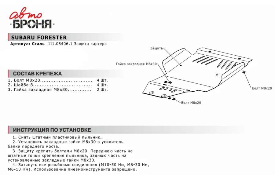 Защита (пыльник) двигателя к Subaru Forester SF