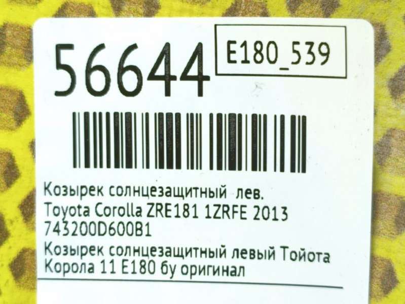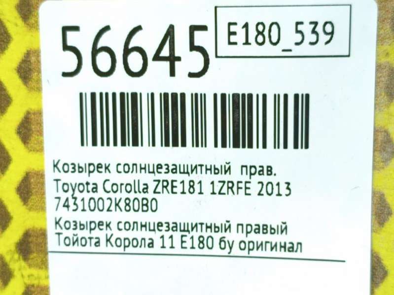 Выберите козырек солнцезащитный для Toyota Corolla E160/170/180 по цене и состоянию из предложенных ниже объявлений из каталога для оформления заказа.