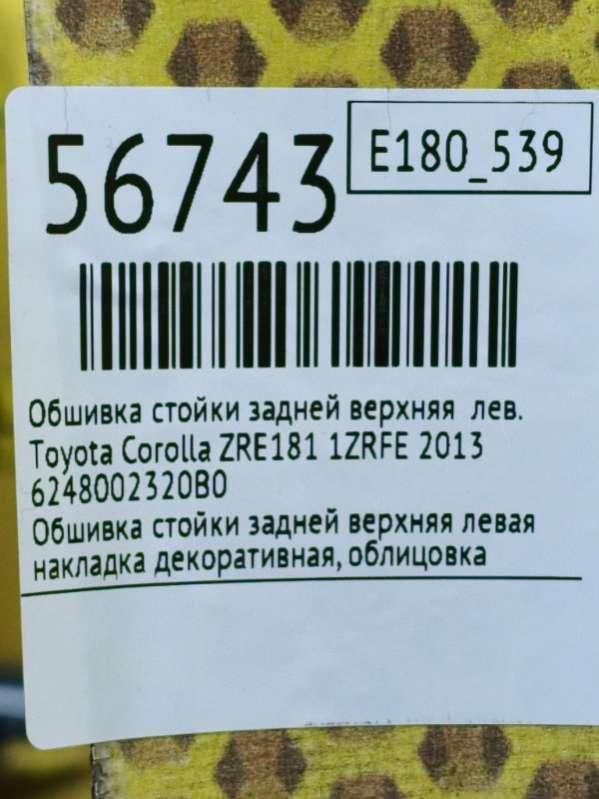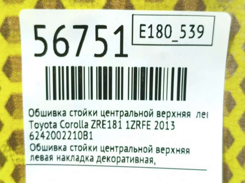 Выберите обшивка стойки (накладка) для Toyota Corolla по цене и состоянию из предложенных ниже объявлений из каталога для оформления заказа.