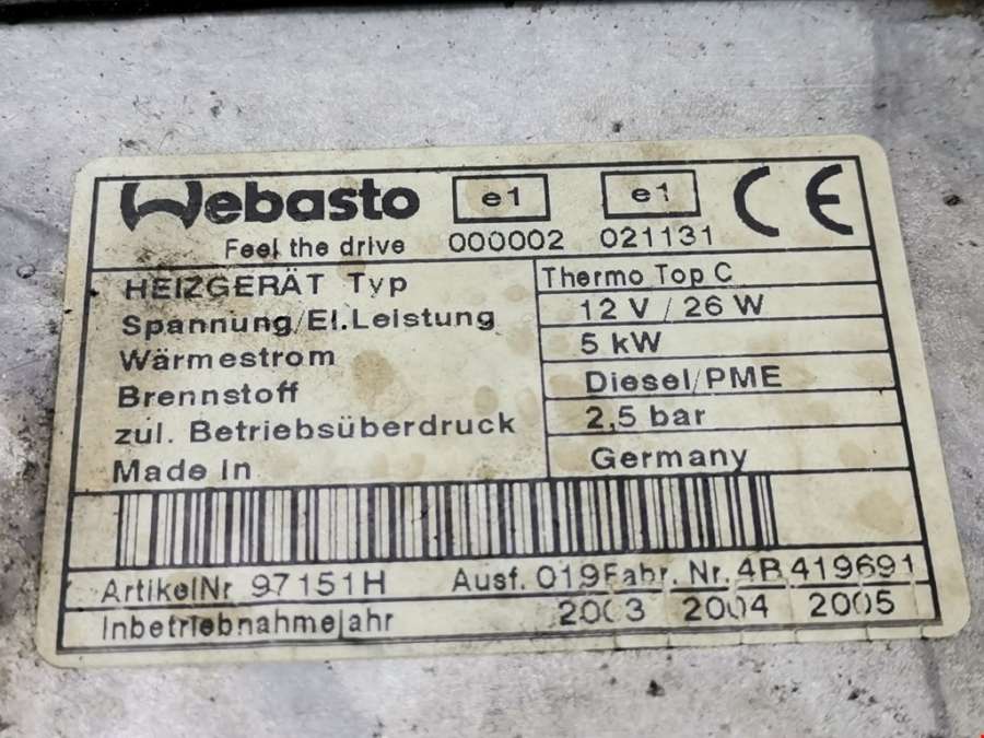 Автономный отопитель (Webasto) к Volkswagen Passat B5, 2003