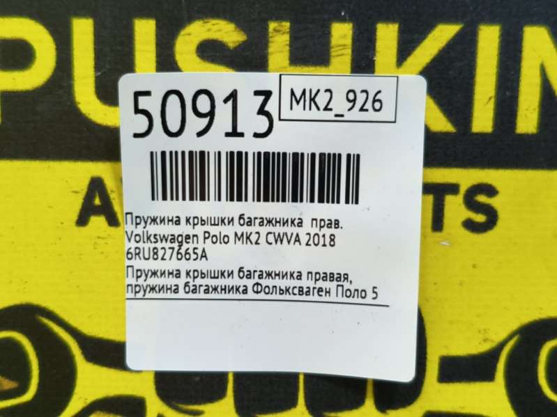 Купить Пружина крышки багажника Фольксваген ПОЛО 5 (2009 - 2019) на авторазборке для иномарок Europodbor.ru в Новосибирске.